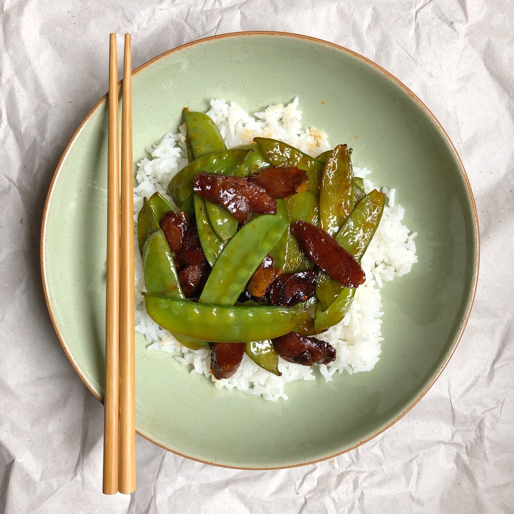 In honour of Chinese New Year, this week’s recipe is a simple stir-fry dish, suitable for week-night dinners. I’ve got it down to about 20 minutes by being fairly careless with the chopping and pretty generous with the heat.